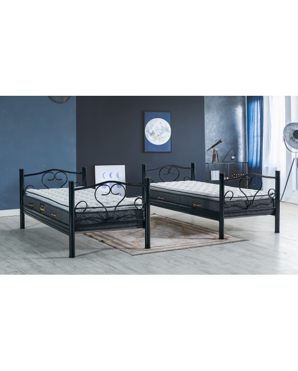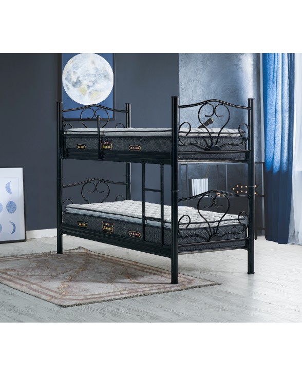 nivora mobilya Metal Ranza, Çift Katlı Ayrılabilir ,90x190cm yatak uyumlu, ferforje karyola(yatak dahil değildir) SİYAH